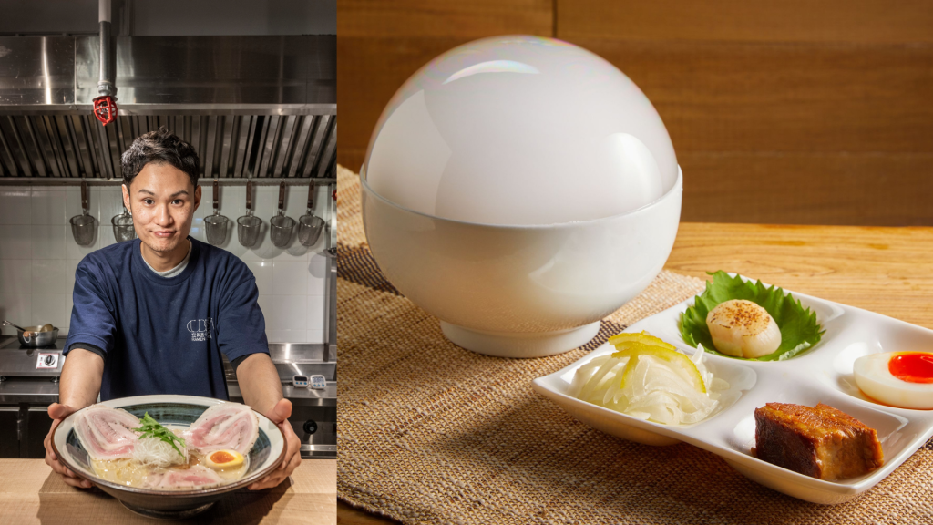 先不說味道,只是外形已叫人眼前一亮! 林隆臣為“涼風紅楚蟹高湯鹽冷面”特別設計了一層涼快外衣——光滑的半球體泡泡外層,一觸即破,隨即散發出淡淡清新的柑橘香,未吃已讓人精神一振。 拉面湯底以日本鳥取縣的時令紅楚蟹熬制,配以自家制的鹽醬汁、白醬油及味醂腌制的新鮮花蛤,更添鮮味,配搭肥美的炙燒北海道帆立貝、蘭王蛋制成的赤心蛋及北海道十勝豚肉,佐以該店自家制的醋漬洋蔥,配搭冷面進食,可謂開胃無比,每日限售50碗。