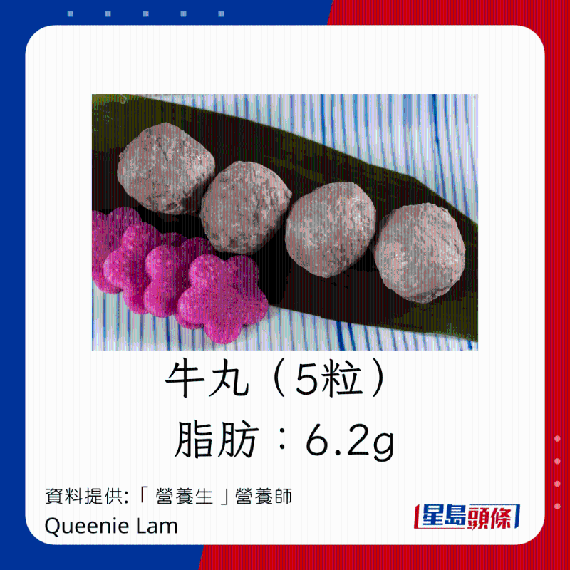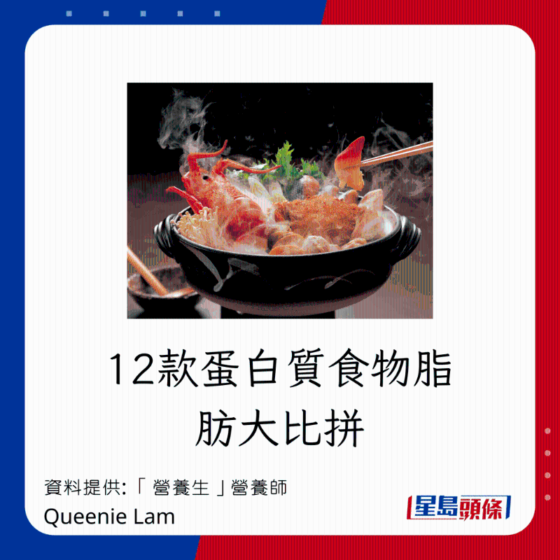 營養師Queenie Lam在“營養生”(Negimen)facebook專頁發文指出,丸類、海鮮和新鮮肉類食物等為火鍋常見配料。根據每100克食物的脂肪含量,她把12款蛋白質食物歸為3類:較健康的“天使區”,以及要多加注意的“警號區”及需要提防的“邪惡區”。