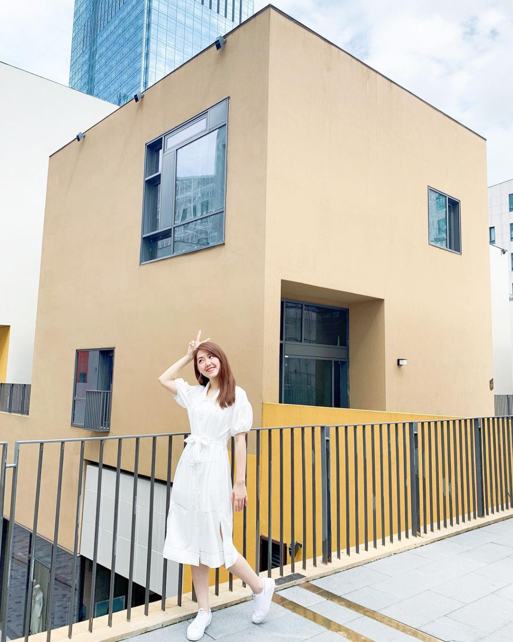 ▲在橫跨兩邊建筑物的天橋打卡十分有特色。圖片來源:微博@Misslanlanda