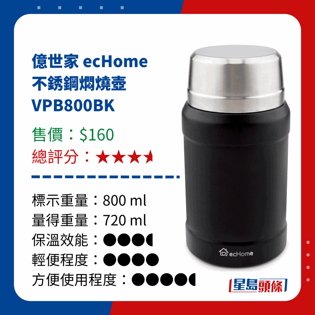 “億世家ecHome”不銹鋼燜燒壺VPB800BK($160)
