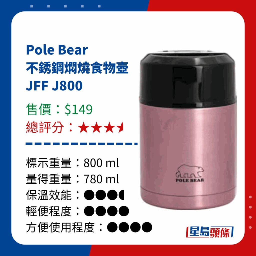 “Pole Bear”不銹鋼燜燒食物壺JFF J800($149)
