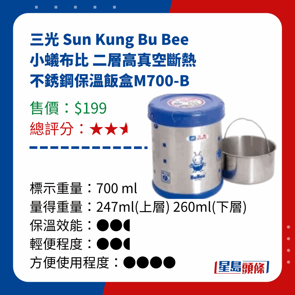 “三光牌Sun Kung”BuBee小蟻布比二層高真空斷熱不銹鋼保溫飯盒M700-B($199)