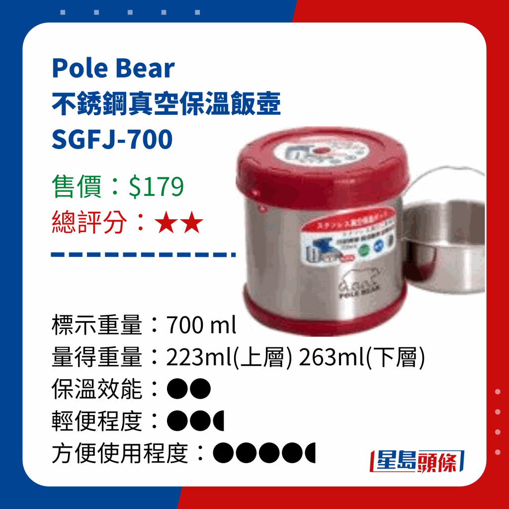 “Pole Bear”不銹鋼真空保溫飯壺SGFJ-700($179)