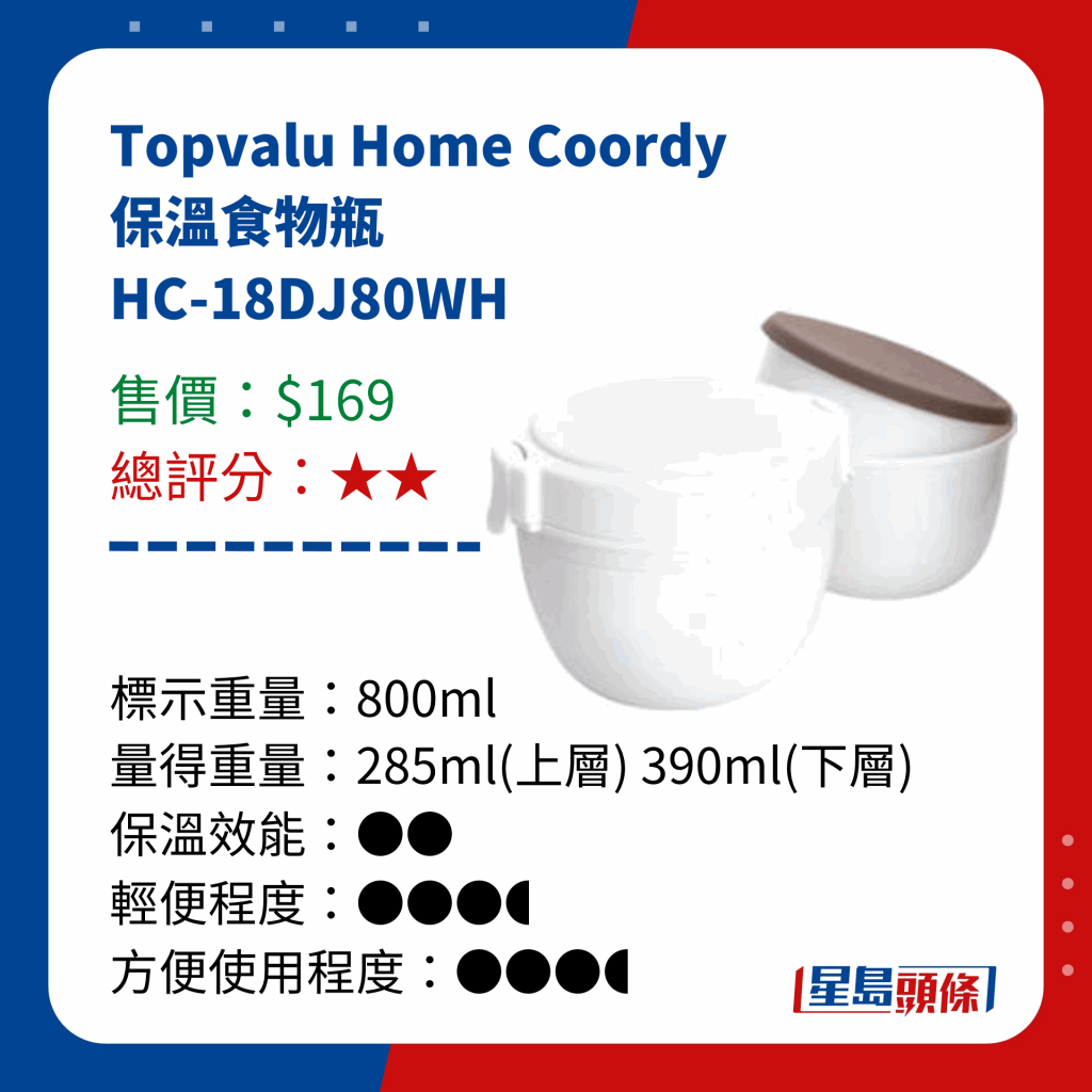 “Topvalu”Home Coordy保溫食物瓶HC-18DJ80WH($169)