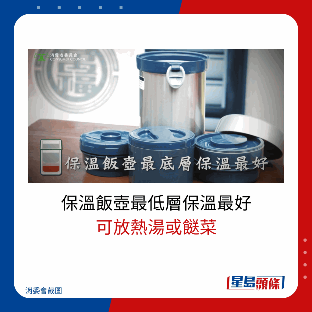 消委會燜燒壺保溫飯壺測試|近日“活力午餐”意外頻生,突然停派飯令家長要臨急抱佛腳,趕買保溫飯壺為小朋友預備午餐,亦令家長更關注食安問題。早前消委會測試 15 款燜燒壺及保溫飯壺,發現其中 2 款樣本的6小時保溫效能低于 50℃。消委會提醒,熱食的存放溫度應高于 60°C,而冷食則應低于 4°C,以免細菌容易繁殖,增加食物安全的風險。