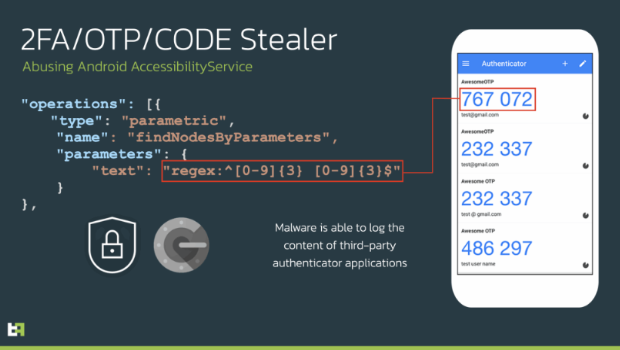 ▲Android手機第3代變種病毒Xenomorph.C,可自動登入二步認證App盜取認證碼。ThreatFabric