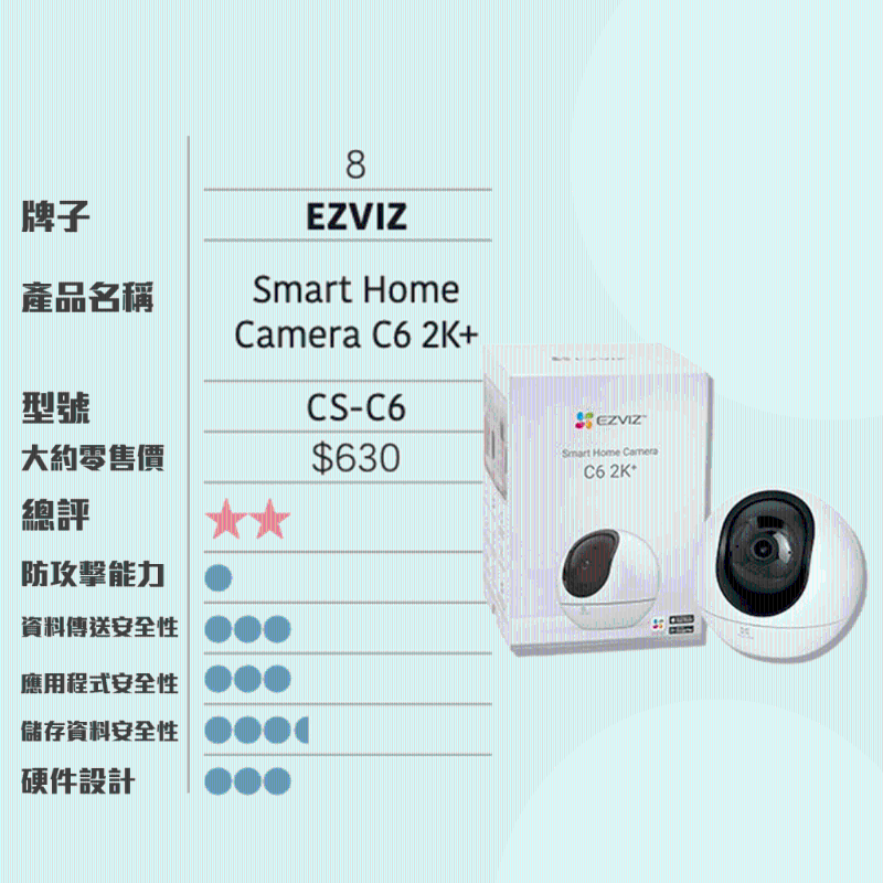 此外報告指出,小米“智能攝影機2K云臺版”MJSXJ09CM鏡頭,零售價約為$269,是10款中最便宜,但獲得的總評卻是第二高,防攻擊能力、資料傳送安全性亦是各款中最佳。