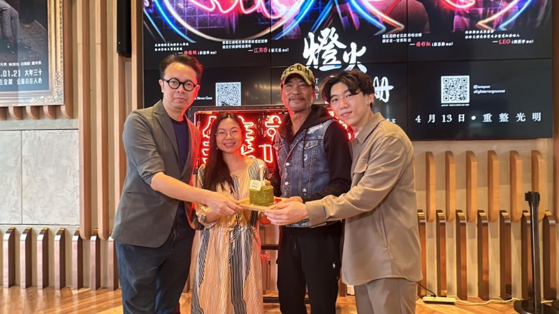 ▲任達華、周漢寧今日出席電影《燈火闌珊》為霓虹燈師傅舉辦的電影優先場,喜獲大會亦安排了生日蛋糕慶生。