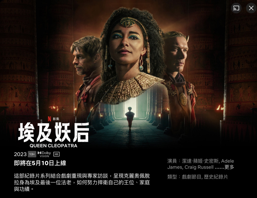 美國影視平臺Netflix(網飛)紀錄片《埃及艷后》因讓黑人飾演艷后而引發爭議,被指亂改種族。 一名埃及人入稟控告Netflix,指其公然藐視埃及的歷史、消除埃及人的身份。 網民在 change.org 發起抗議,吸引超過8.5萬人聯署。