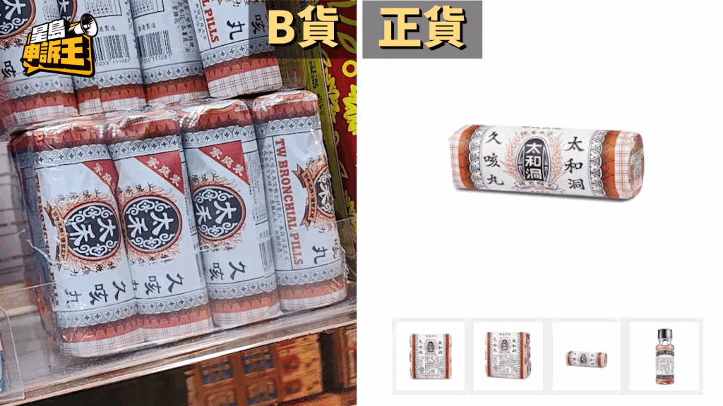 ▲太和洞久咳丸—正貨、B貨包裝對比