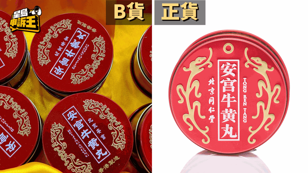 ▲北京同仁堂安宮牛黃丸—正貨、B貨包裝對比