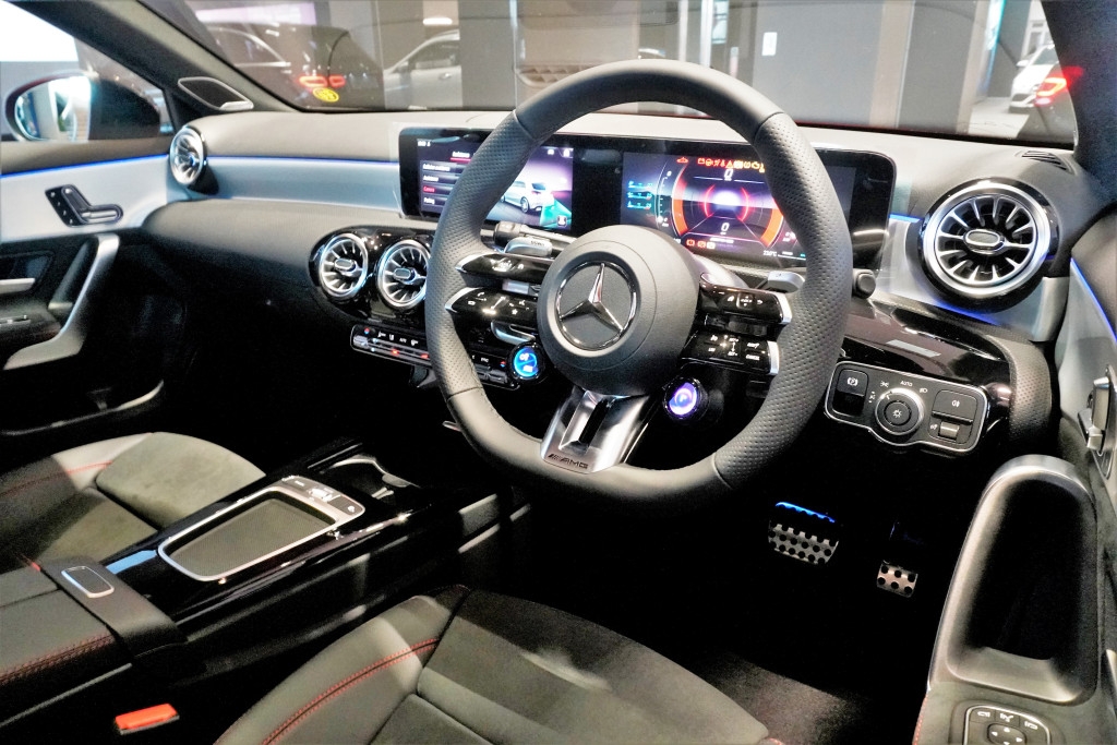 新版A35內外均有不少改良升級,最矚目是2.0 Turbo引擎增添48V Mild-Hybrid混能系統,包括鋰電、皮帶連動的RSG電馬達連發電機模組。引擎基本輸出馬力及扭力依舊為300ps及400Nm,不過馬達可額外提供14ps及150Nm。AMG Speedshift DCT雙離合器半自動波箱也由之前7前速升級至8前速,0至100km/h加速仍舊為4.7秒,詳細規格見附圖。