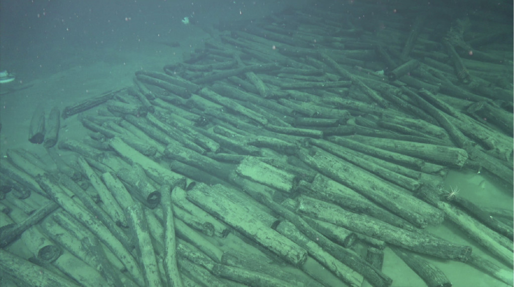 其中一處定名為南海西北陸坡一號沉船,有多個疑似被船艙分隔開的成堆文物,最大高度達3米多,文物以瓷器為主,散落范圍達上萬平方米,推測數量超過十萬件,根據出水文物初步判斷為明代正德年間(1506-1521)。另一處定名為南海西北陸坡二號沉船,發現大量原木,尺寸相近、碼放整齊,大多經過簡單加工,初步研判是從海外裝載貨物駛往中國的古代沉船,初步判斷為明代弘治年間(1488-1505)。