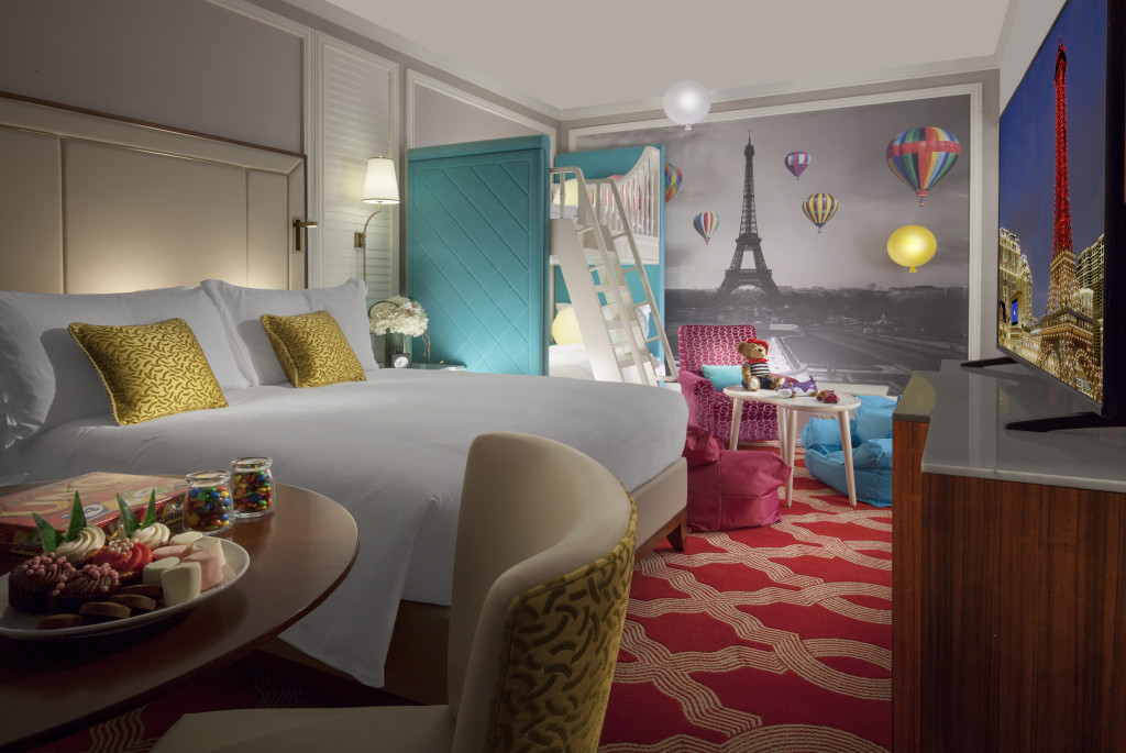 帶小孩子去歐洲旅游絕非易事,在挑戰長途旅行前,不如先到澳門巴黎人感受一下法國風情。登上仿真度極高的“巴黎鐵塔” 7樓(住客免費)與37樓觀景臺,飽覽路凼金光大道和澳門美景;小朋友必去面積近2,000平方米Q立方王國暢玩室內及室外游戲區,室外區可一邊欣賞鐵塔一邊玩旋轉木馬,室內就有波波池雪球大戰、攀登太空艙等,設計充滿法式元素,設施也很有心思。酒店房間更可欣賞到鐵塔景色,親子套房亦附設小朋友最愛的雙層床,空間足夠讓小朋友爬上爬落自得其樂。
