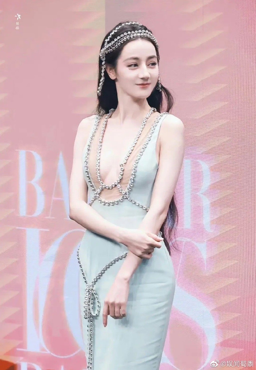迪麗熱巴日前身穿水藍色水晶鉆飾魚尾裙出席時尚芭莎年度派對,胸口深V設計讓雪白肌膚全都露,放下一頭長發的迪麗熱巴,頭頂鉆石串飾,整體造型華麗又氣質,不過她紅毯走到一半,卻越走越不自在,雙手擺在胸前,還不時看著胸前的薄紗。