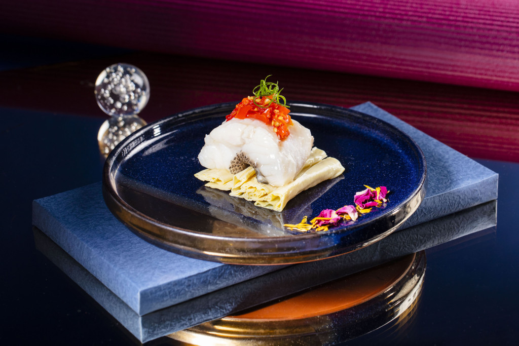 以星級品味套餐為例,有櫻海老海王焗釀蟹蓋、原只八頭湯鮑魚伴鮑汁扣鵝掌、瑤柱花膠黃耳燴燕窩及姜蔥蒸珍珠龍躉斑等菜式,其中櫻海老海王焗釀蟹蓋是把鮮拆蟹肉拌入櫻花蝦、姬松茸、帶子、雞髀菇及煙肉等,釀入蟹蓋后烤焗至金黃色,外層酥香鬆化,覆蓋啖啖清甜的蟹肉,吃起來有多重味覺享受。