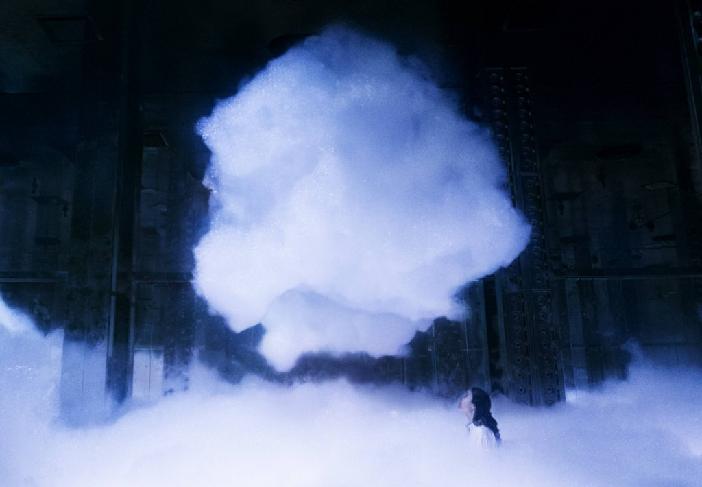 ▲“無相之云,雕塑與生命之間”填滿肥皂泡,泡沫隨場內微風卷起飄散,非常夢幻。