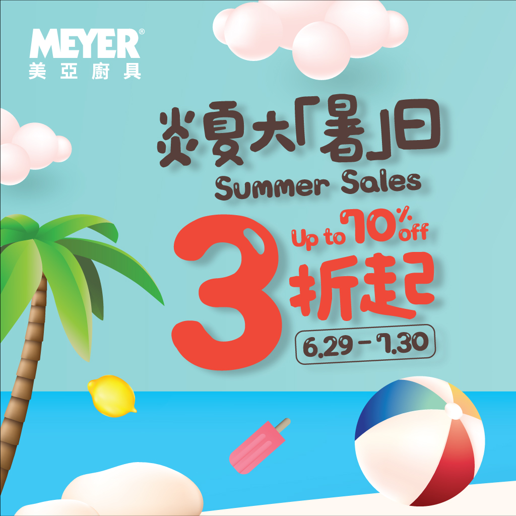Meyer美亞廚具夏日祭現已開鑼! 由 6月29日 至 7月30日,Meyer美亞廚具網店及實體店同步進行減價優惠活動,場內不黏煎鍋、單柄鍋、湯鍋、中式鑊、其他配件及廚具產品低至3折,其中烘培用品最便宜$19就有交易! 除了Meyer美亞廚具自家出品,今次優惠還涵蓋CIRCULON、ANALON、PRESTIGE多款高級廚具。 現全店買滿$300還會再減$30,想換廚具的話記得把握機會!