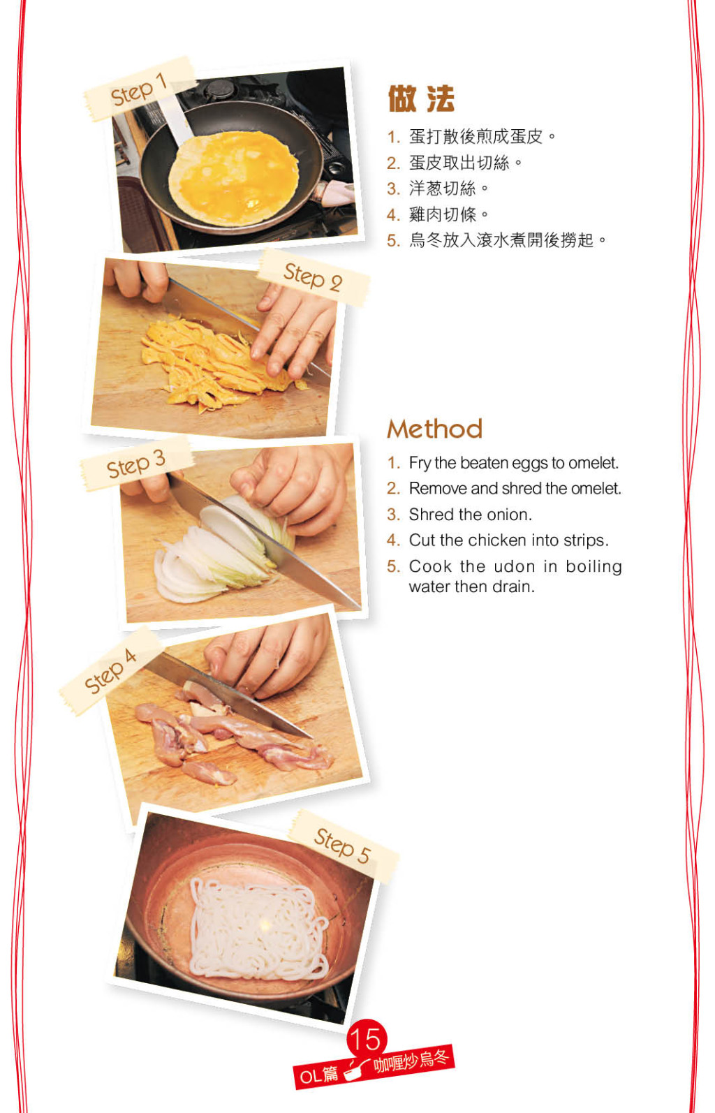 喜歡吃香濃惹味及干身的烏冬,推介“咖喱炒烏冬”,美味秘訣是先以咖喱粉爆香洋蔥,再下配料及烏冬炒勻,另可隨喜好,加入不同的蔬菜及肉類,如甘筍、甜椒、椰菜、牛肉、豬肉等,配搭隨意。