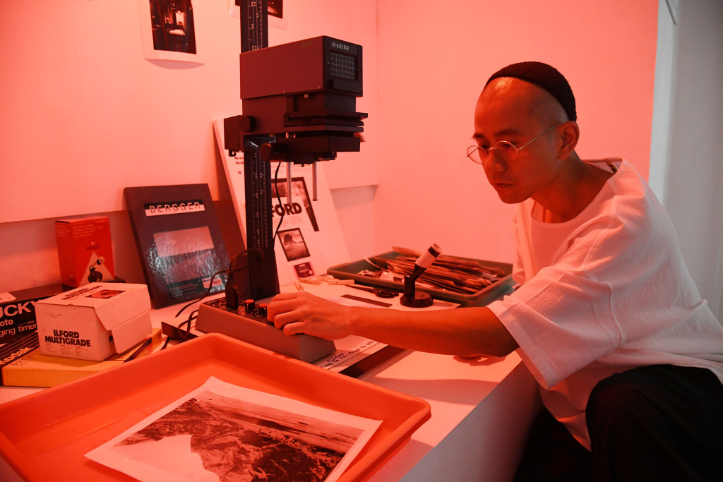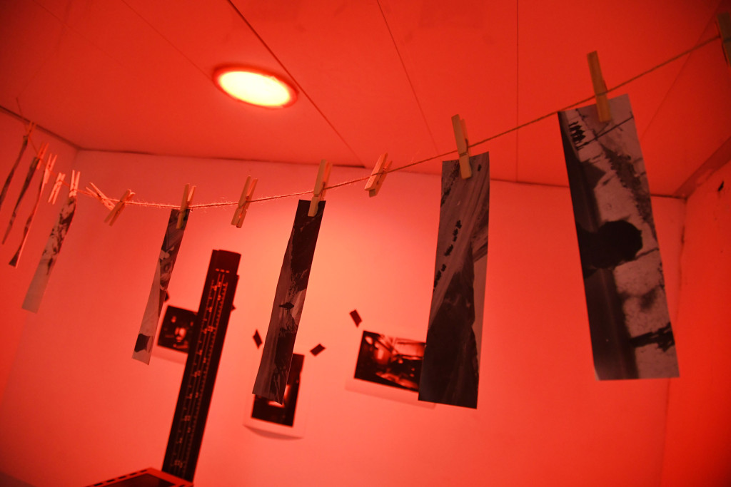 展覽場地特辟一角裝置成曬相的黑房空間,當中正展示了阿揚的攝影作品。