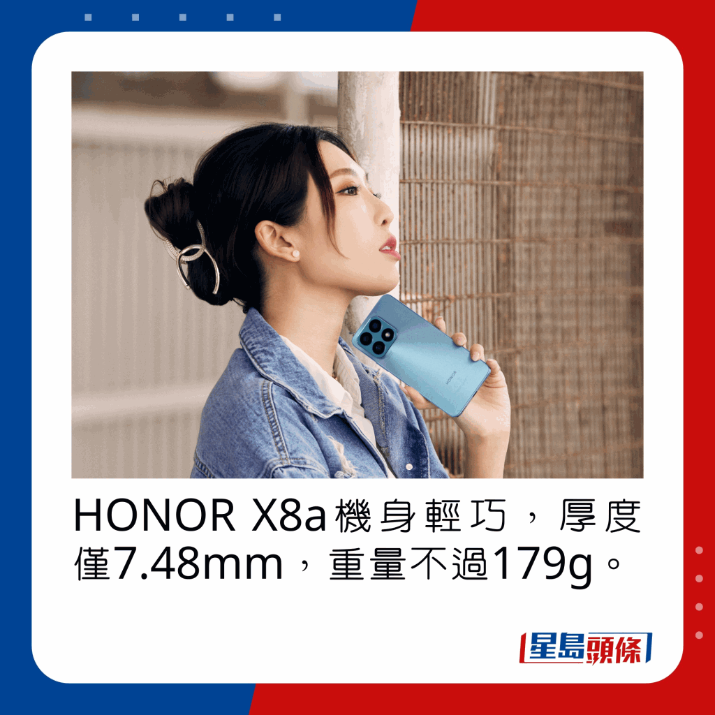 誰說Android入門5G手機就得放棄影拍表現?HONOR X8a配備1億像素廣角主鏡,另設5MP超廣角及2MP微距,加上AI技術及影像處理,日攝夜拍質素有板有眼。 X8a另一吸引地方,是6.7吋FullView熒幕擁有FHD+解像度之馀,還支援90Hz更新率,以及取得TUV Rheinland低藍光認證。效能方面, X8a處理器採用MTK Helio G88,內置8GB RAM及128GB儲存容量,至于4,500mAh電池容量不算大,但支援22.5W有線快充。