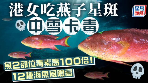 吃海魚小心中雪卡毒! 本周日(10日),香港2名女子疑因進食燕子星斑后中雪卡毒,出現腹痛、腹瀉和等中毒癥狀,涉事的燕子星斑為事主朋友從沖繩帶回港。衛生署指,攝取過多雪卡毒可影響神經系統,嚴重可致呼吸停頓。 據食安中心資料,含雪卡毒素的魚類,有2部位的毒素高達100倍,其中有12種常見魚類易藏雪卡毒。