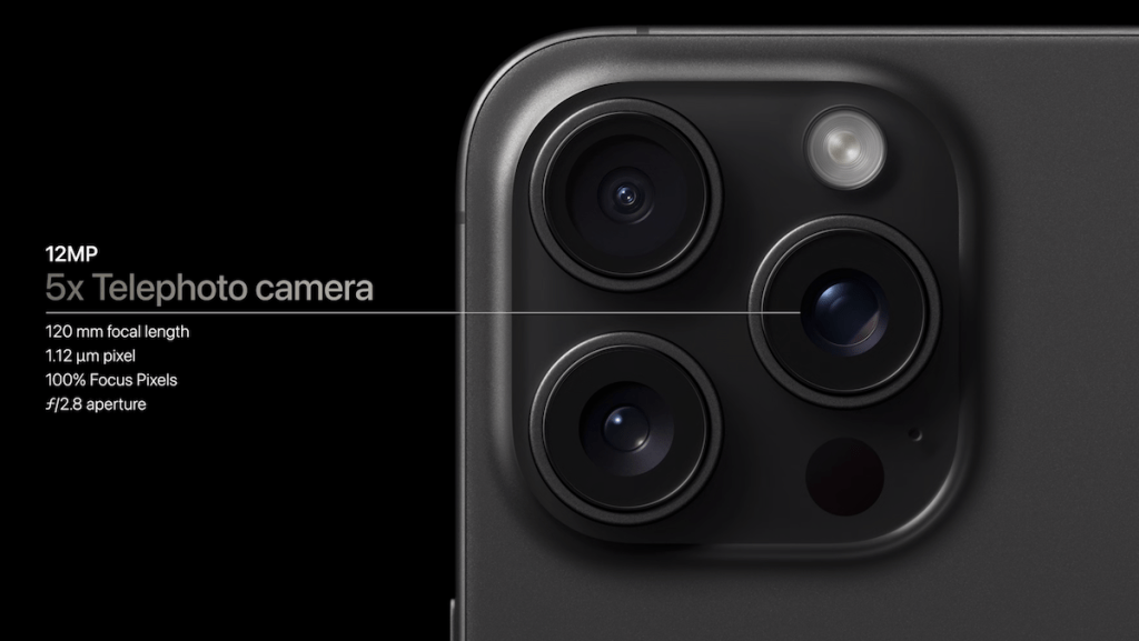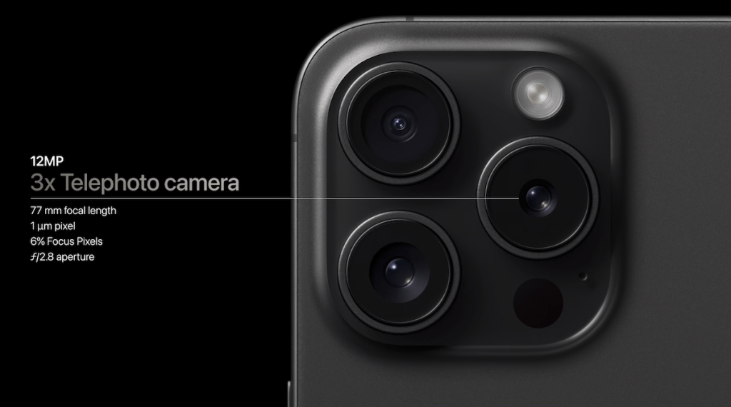 iPhone 15 Pro沿用12MP的3倍光學變焦鏡。