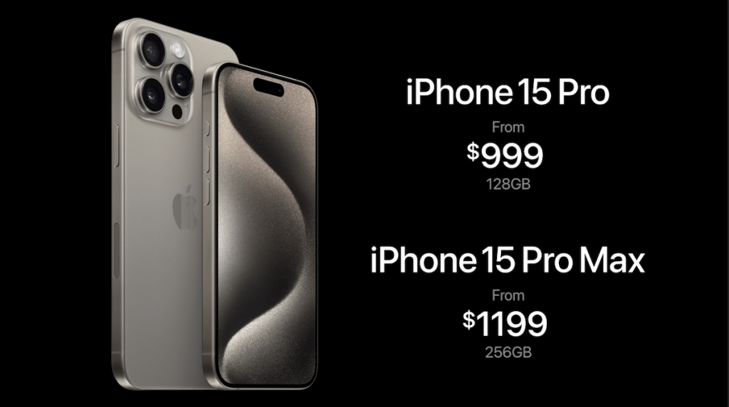 iPhone 15 Pro及iPhone 15 Pro Max本周五開始接受預訂,9月22日賣街,售價分別由999美元起及1,199美元起,由于iPhone 15 Pro Max改由256GB起跳,實際未有如傳聞加價。