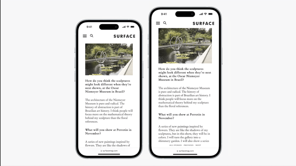 iPhone 15 Pro及iPhone 15 Pro Max屏幕分別為6.1吋及6.7吋Super Retina XDR芒,戶外峰值亮度達2,000nits。