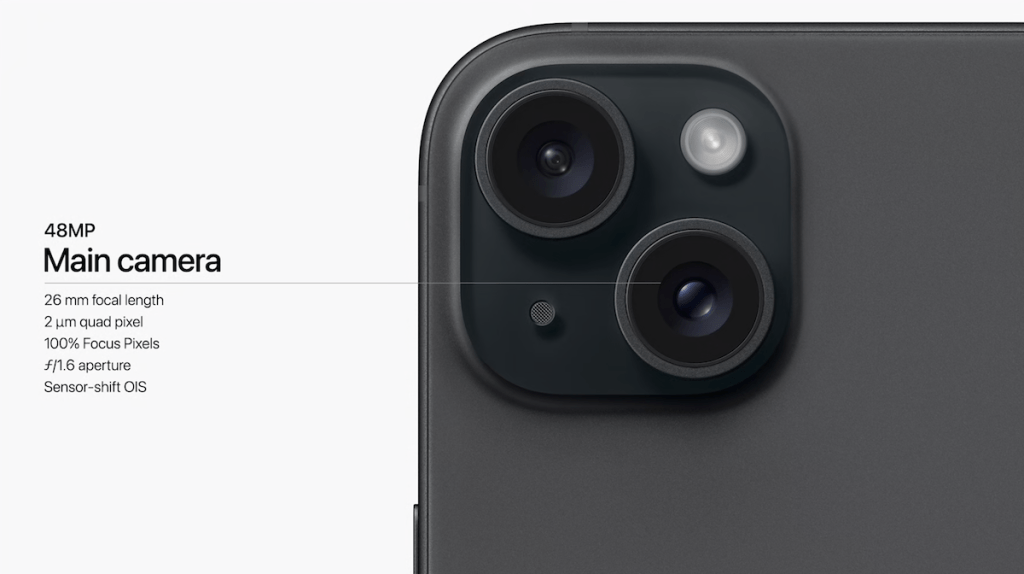 iPhone 15及iPhone 15 Plus廣角主鏡雙雙由上代12MP升級至48MP。