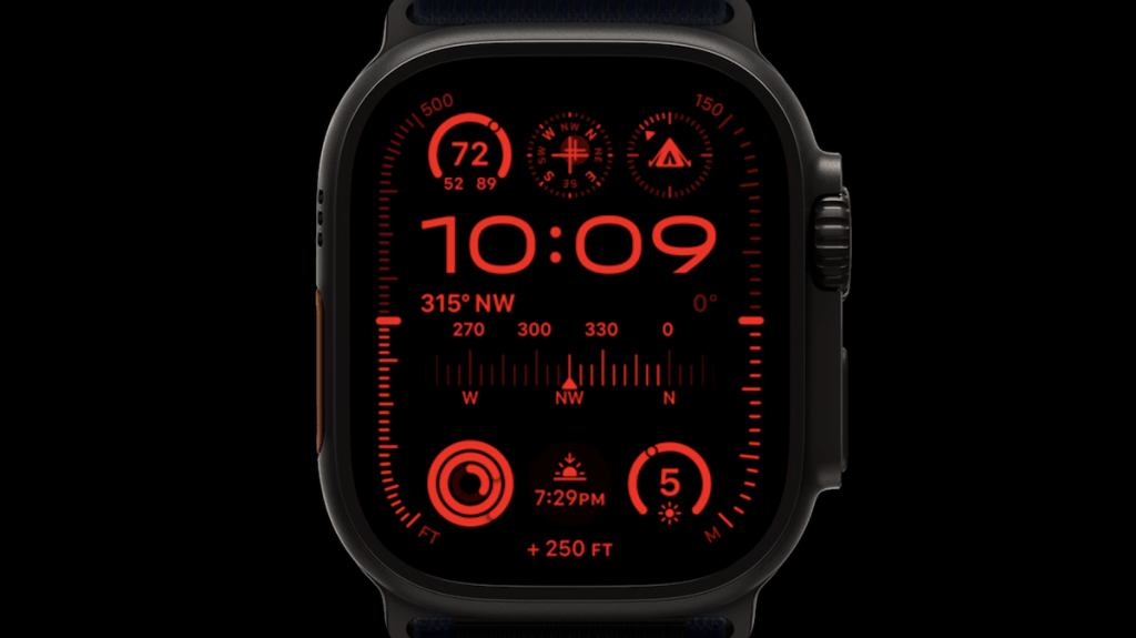 Apple Watch Ultra 2登場,屏幕亮度高達3,000nits, 夜間模式更可以在昏暗環境中啟動。