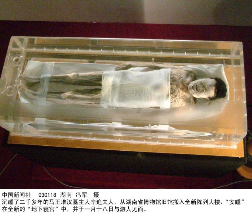 馬王堆漢墓的主人是漢長沙國丞相利蒼的家族墓地,共有3處墓穴,分別為一號墓利蒼妻辛追,二號墓墓主轪侯利蒼,三號墓利蒼之子利豨,目前開放參觀的是三號墓坑。整個馬王堆最出名的當然屬于一號墓出土的女尸,即辛追夫人。時經2000多年,尸身保持完整,仍然能夠清楚地看到她皮膚的紋理,甚至于皮膚下方的毛細血管都清晰無比。辛追夫人剛出土時,與死亡兩周的尸體并沒有太多的區別,時間仿佛在她的身上定格了。