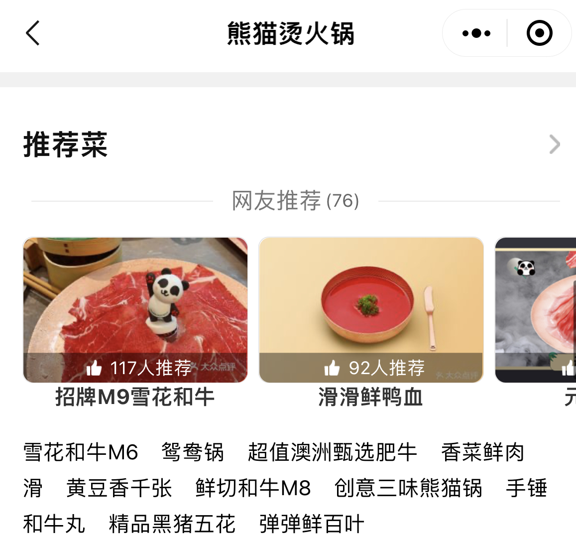 點開推薦菜,看菜單