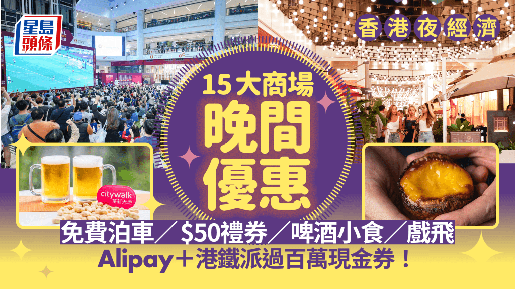 夜經濟商場優惠|配合政府的“香港夜繽紛”活動,香港的各大商場均紛紛推出夜間消費優惠,不少商場在晚間大派現金券、戲飛、啤酒、小食,亦有商場推出免費泊車優惠,更有商場大手筆贈送免費日本來回機票!以下整合港九各大商場夜經濟優惠活動,即看。