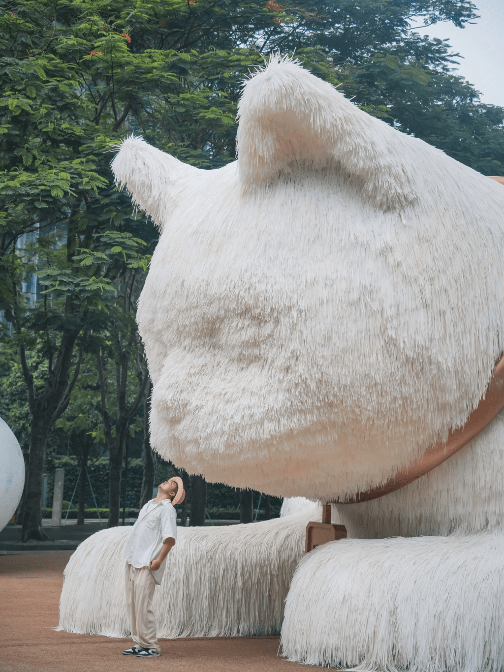 看完萬象城的長毛巨貓,步行約15分鐘,就到旁邊華潤深圳灣體育中心,中間的Bay de Luna廣場同期舉行巨貓展覽,有他們的代言貓Luna與大家一起過中秋!現場除了巨型貓咪Luna與大家賞月,更有不同姿態的小Luna ,包括在樓梯聚集玩耍的、有些貓可愛地翻肚、有些在奔跑、有些安靜的坐著,到場即可被貓貓們重重包圍,感受滿滿的幸福感! 由于中秋一定非常多人到場,