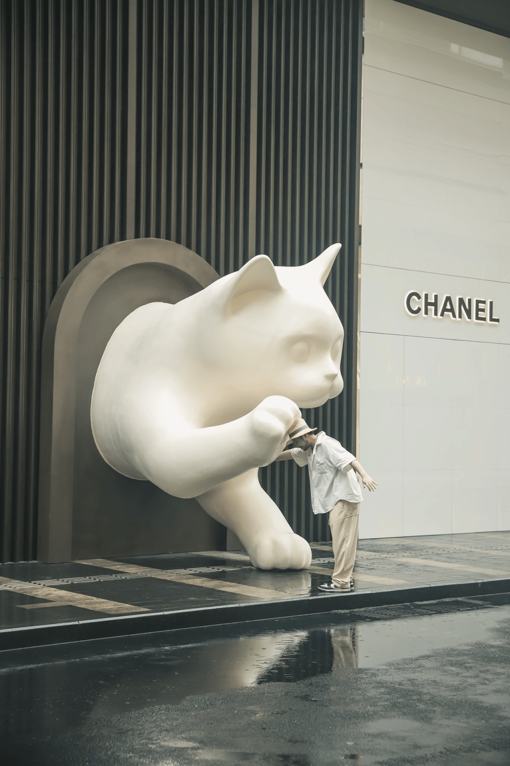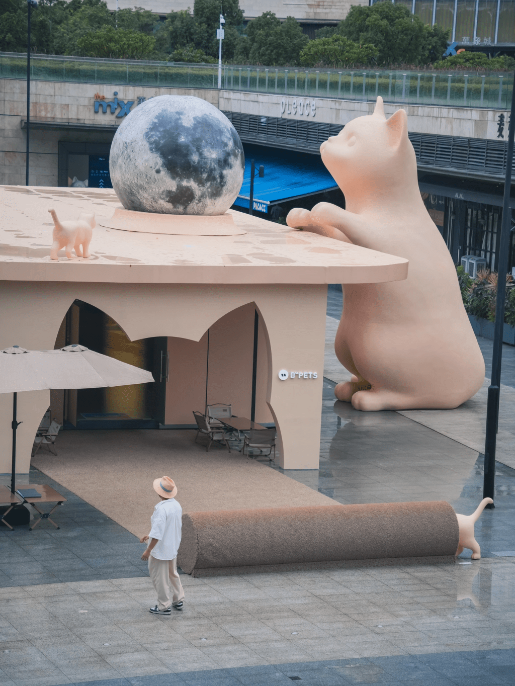 2. 第二站到時尚街區上的巨型貓爪、揮手貓貓、樓頂的月球