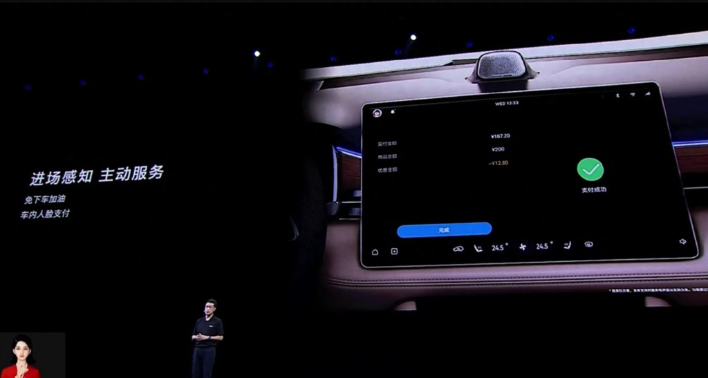 無獨有偶,內地車廠AITO在今個月初發布問界M7時,亦有提及車內人臉支付功能,稍后可以利用新推出的“小藝智慧加油”,直接使用小藝語音導航至相應油站,在中控臺螢幕選取相應油槍及油價,入完油便可掃描人臉付款。