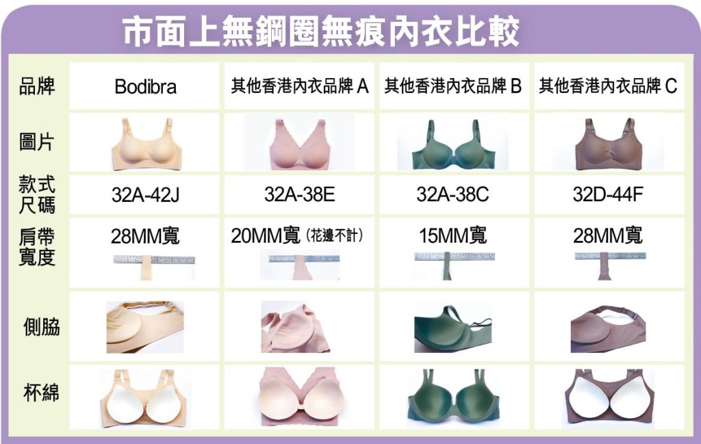 無鋼圈內衣相較于傳統的鋼圈內衣,在舒適度上具有明顯優勢。而香港制造功能內衣品牌Bodibra無鋼圈內衣則采用柔軟的布料和彈性材質,提供更自然的包覆感和舒適度,減少對胸部的壓迫。無論是鋼圈內衣還是無鋼圈內衣,適當的承托力和包覆力都是選擇內衣時需要考慮的關鍵因素。良好的承托力可以提供胸部的支撐和提升效果,而適當的包覆力可以維持胸部的形狀和輪廓,使其看起來更加美觀。不同品牌的內衣在承托力和包覆力上可能有所差異,因此選擇時應根據個人需求進行評估。