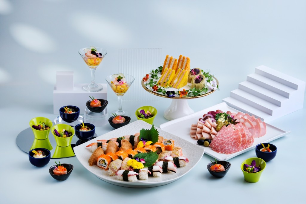 選用花萃煥肌周末下午茶自助餐的話,除下午茶供應的美點外,還可享用豐盛的自助餐美饌,如精選壽司、蝦肉香芒咯嗲、迷你芝士漢堡和一系列芒果巧克力主題甜點。