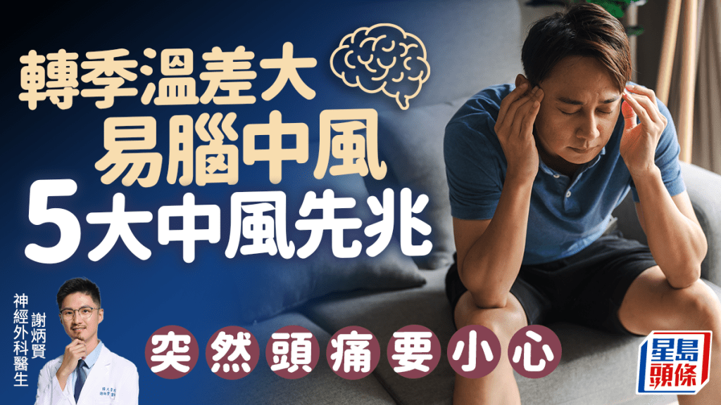 天氣轉冷溫差大易引發中風。有神經外科醫生發文指,秋季的日夜溫差大,容易令血管受刺激,引發中風。他表示,雖然中風的突發性疾病,但仍然有跡可尋,并分享5大中風先兆,如果突然頭痛要小心。