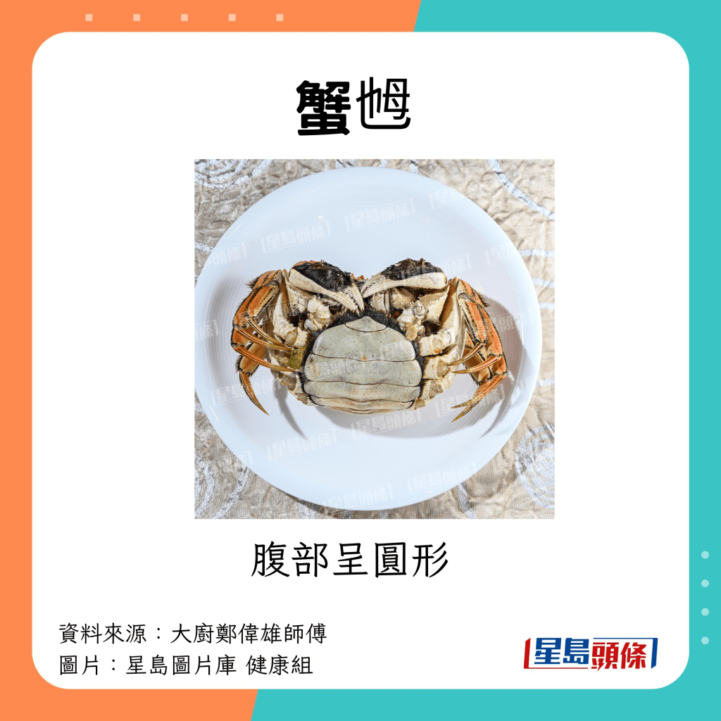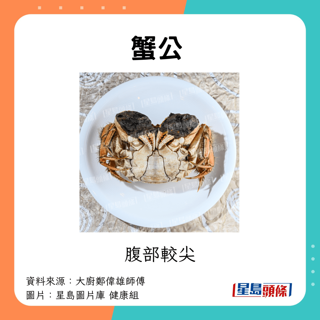 如何分辨大閘蟹公母?鄭偉雄師傅表示,可用2個方法識別,那就是蟹肚和蟹膏: