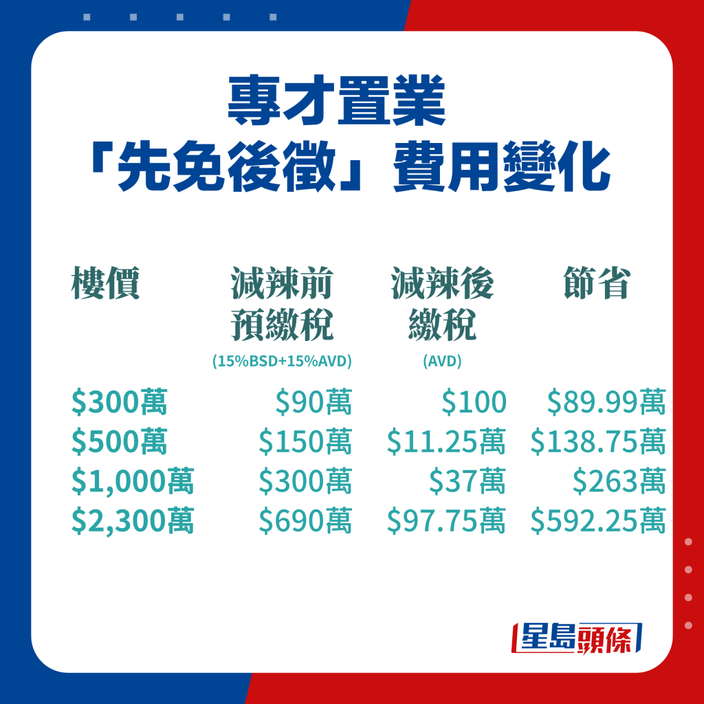 而現在,外來人才買房征稅可與香港永久性居民看齊,置業印花稅由“先征后退”改為“先免后征”,即買房時只需要按照樓價繳交AVD,若相關人士其后未能成為香港永久性居民才繳付BSD,稅款負擔大幅下降。