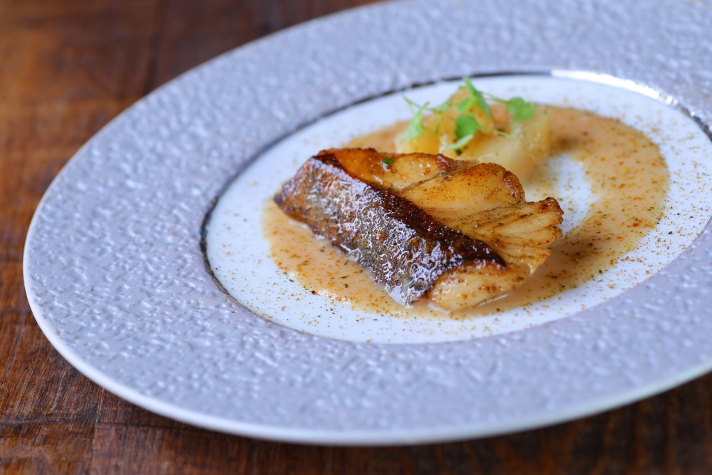 ▲鐵板燒海賀——桃味噌銀鱈魚,加入當季白桃的味噌醬汁,提升了銀鱈魚的鮮甜與香味。