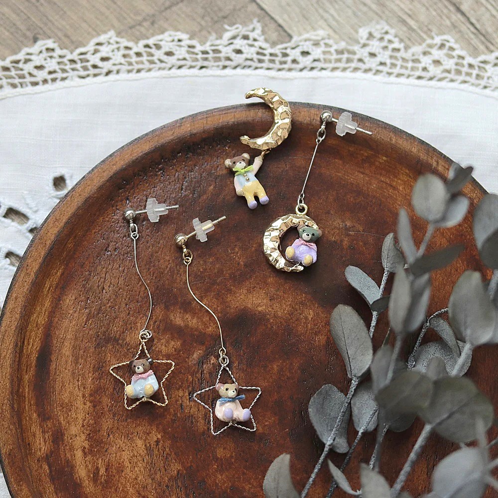Ayatorie小熊和月亮耳環上$389irorio、小熊和星星耳環下$389iroiro。
