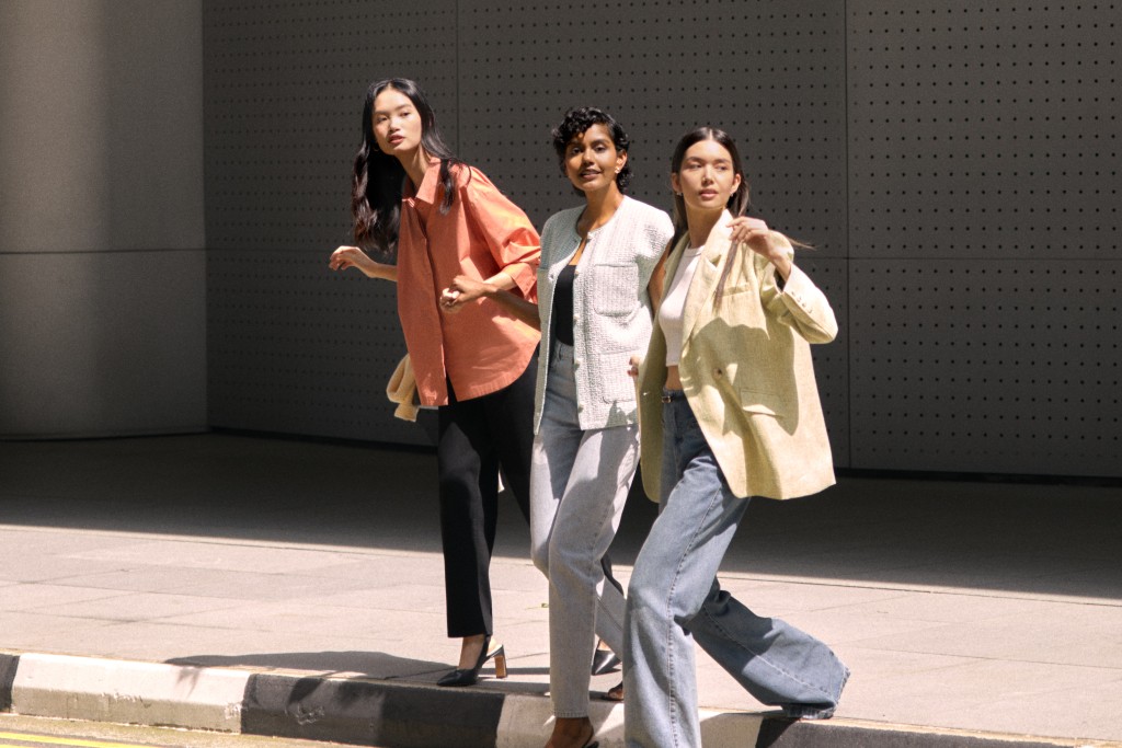 ▲左/Oversized橙色恤衫/HK$329、黑色牛仔褲/HK$389;中/呢絨外套/HK$355、直腳牛仔褲/HK$389;右/西裝外套/HK$475、闊腳牛仔褲/HK$415。 新客戶購物滿HK$350或以上,即享9折。 (Love, Bonito)