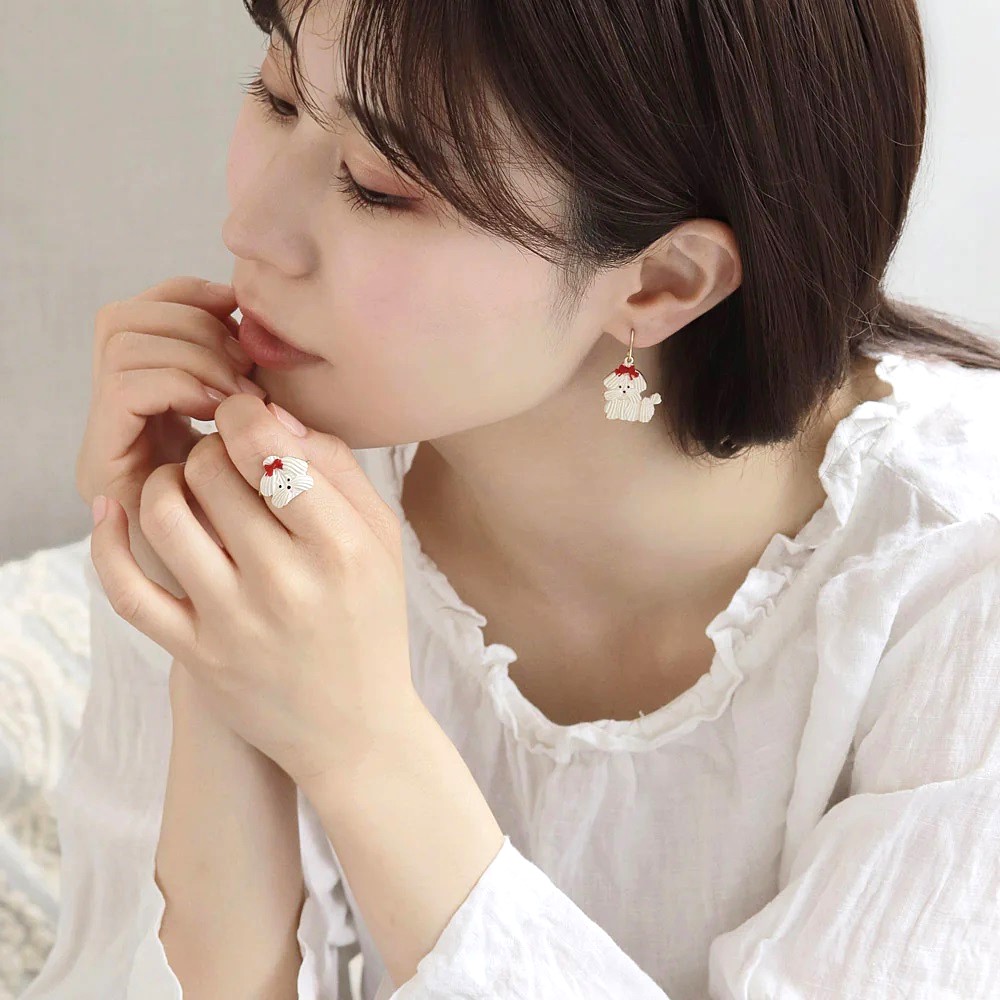 Ayatorie馬爾濟斯犬 x Meringue蛋白餅拼檸檬茶耳環$399、指環$339,iroiro。