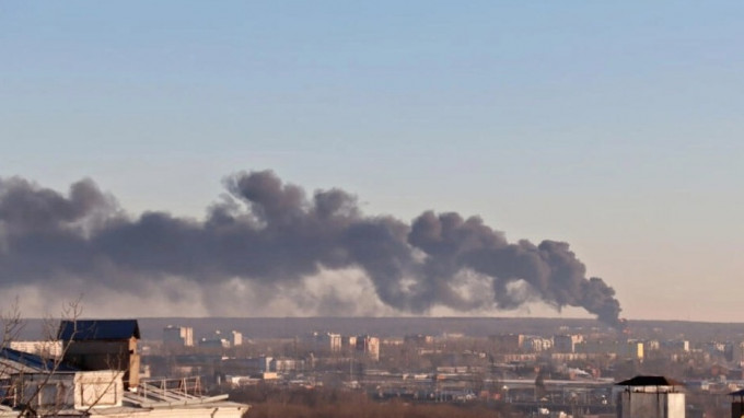 俄庫爾斯克地區去年12月遭烏無人機襲擊后升起濃煙。