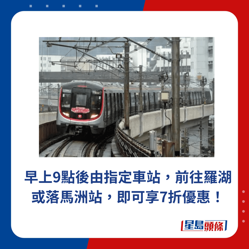 早上9點后由指定車站,前往羅湖或落馬洲站,即可享7折優惠!