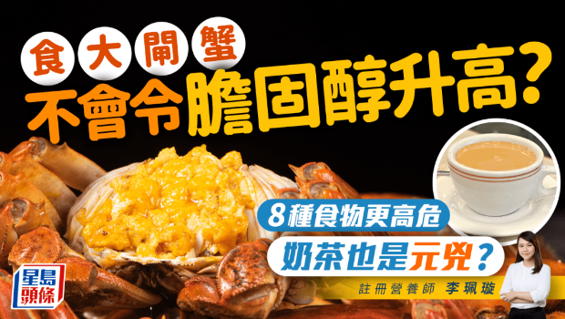 大閘蟹當造,喜歡吃但又怕膽固醇高?有營養師指出,大閘蟹雖然屬高膽固醇食物,但并非令膽固醇上升的元兇。她指出,反而有8類常見食物會影響血液中的膽固醇,比大閘蟹更危險,其中包括港人愛喝的奶茶!