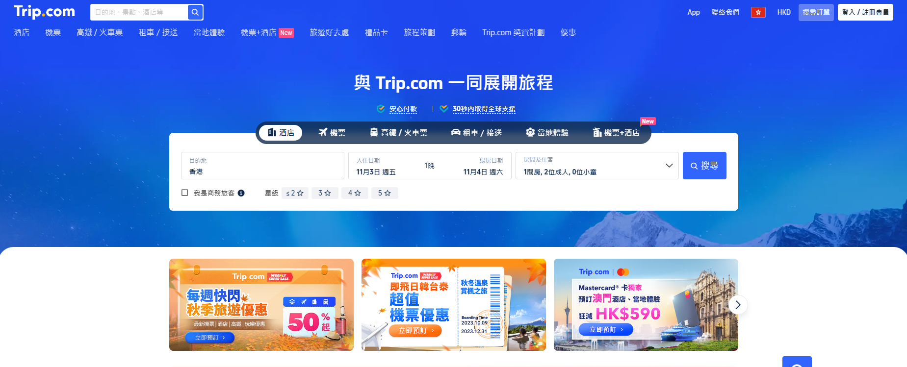 Trip官網除了可以預訂香港的酒店、機票、門票等等,出國游也能用得上。官網會不定期更新折扣優惠碼,不時有特價機票、酒店可以搶購,價格非常實惠!